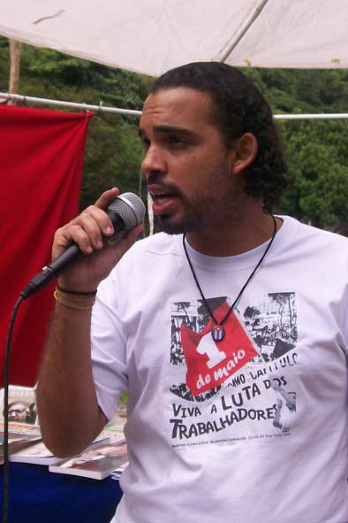 Fábio Rdrigues, da Juventude 5 de Julho, fala aos jovens trabalhadores. Quinta da Boa Vista, Rio de Janeiro-RJ.