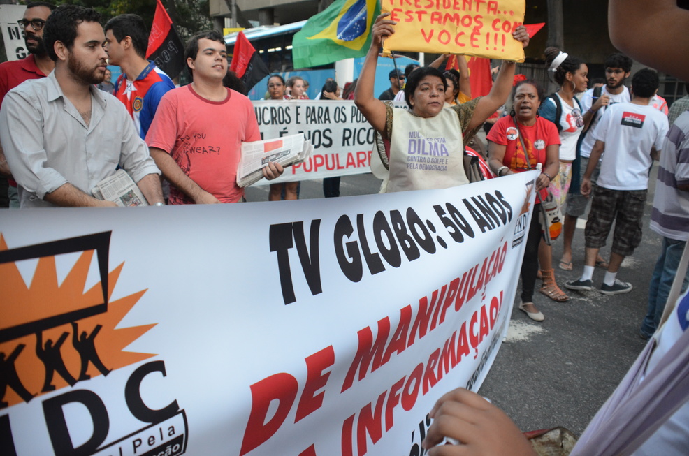 Contra o monopólio da comunicação, principalmente a Globo.