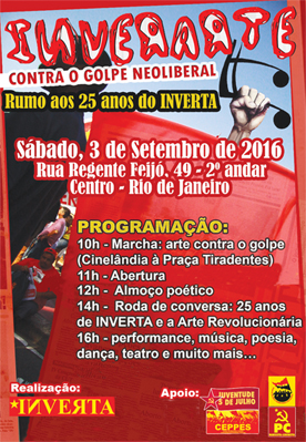Fotos INVERARTE contra o golpe neoliberal! http://admin.inverta.org:8081/jornal/galerias/fotos-do-inverarte-contra-o-golpe/fotos-inverarte-contra-o-golpe-neoliberal/view http://admin.inverta.org:8081/jornal/@@site-logo/topo2.png Fotos INVERARTE contra o golpe neoliberal! Clique para ver a imagem no tamanho completo… Tamanho: 205KB